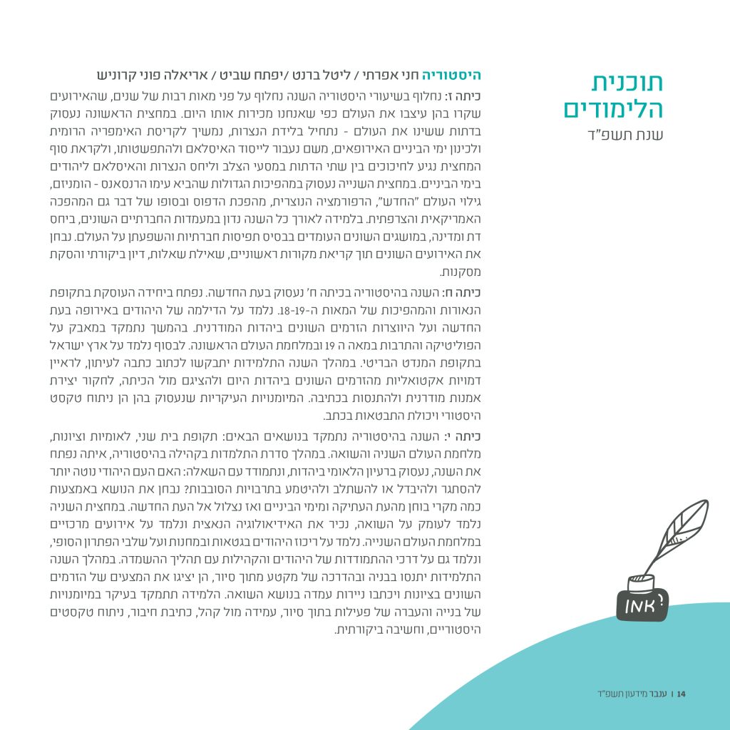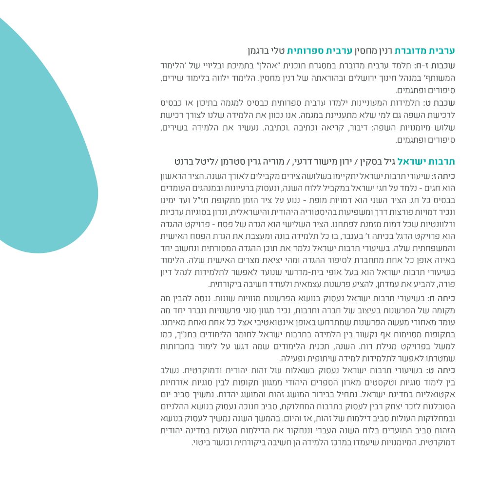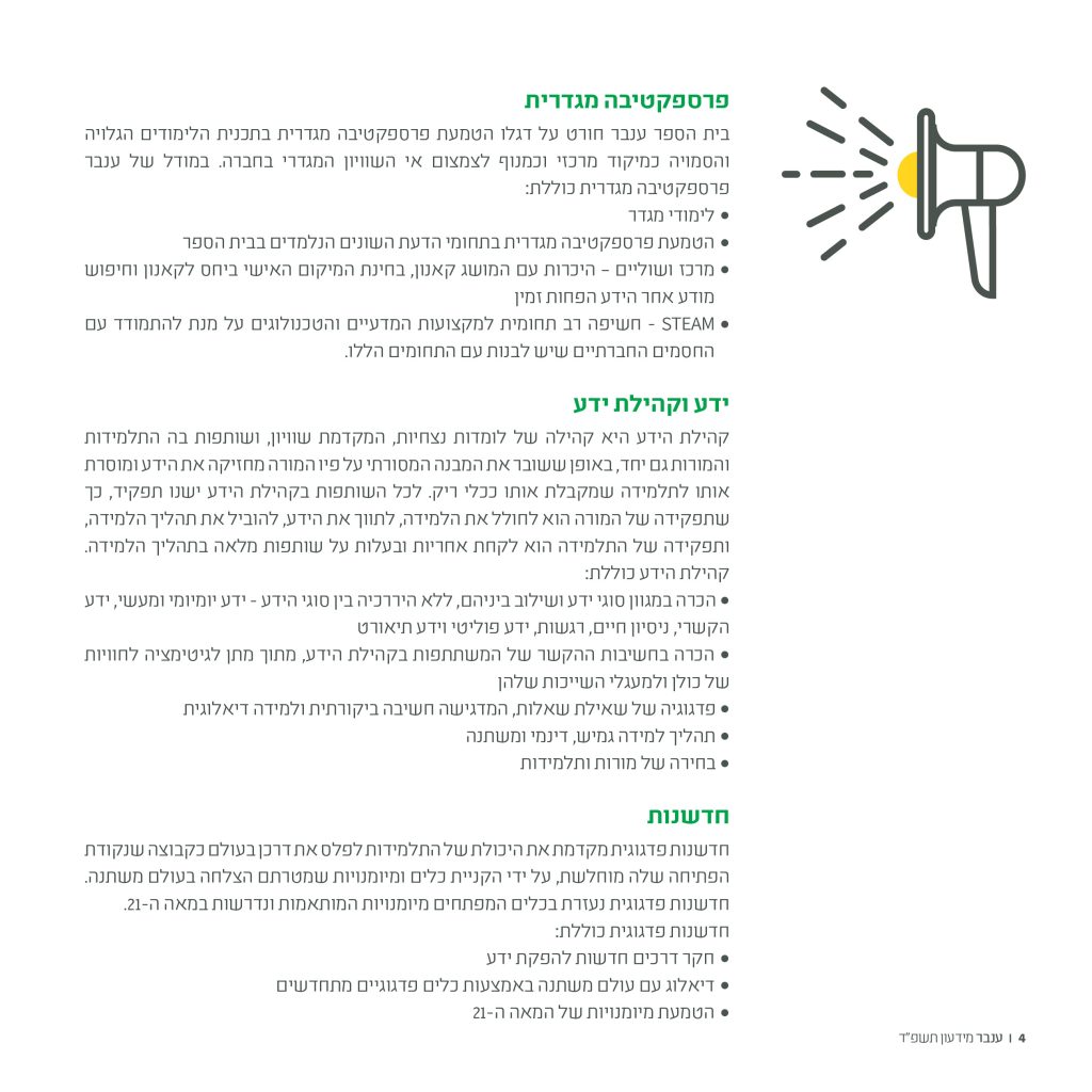 הטמעת דרכי הוראה ולמידה חדשניות (כגון: Debate, למידת והוראת חקר, למידת עמיתים).