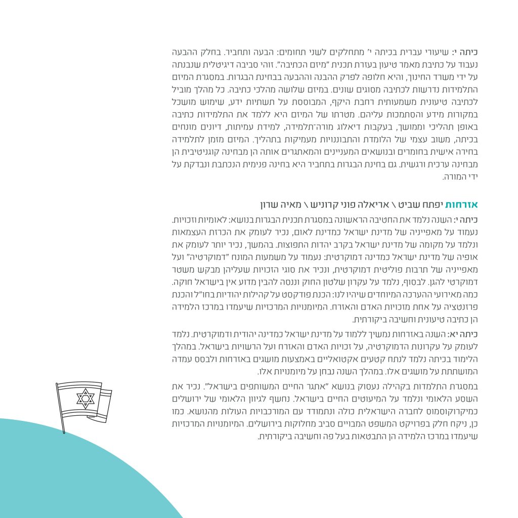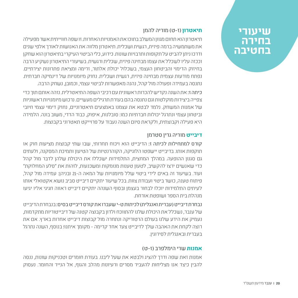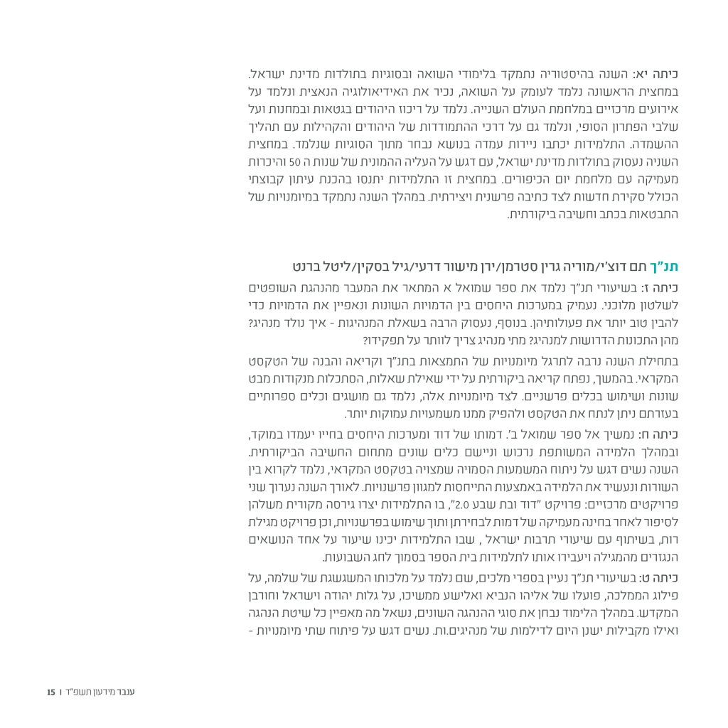 בחירה כערך מוביל בתוכנית הלימודים (שיעורי בחירה, למידה בדרך החקר).