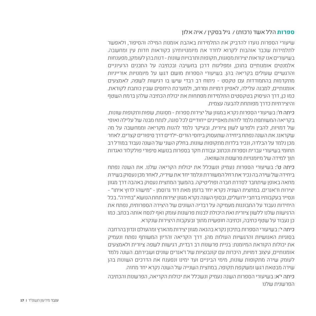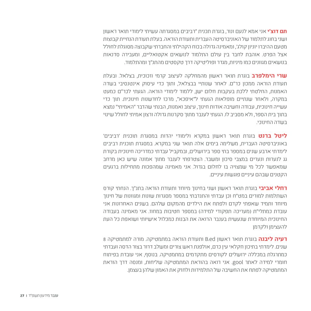 פיתוח כלים לניהול דיאלוג וקונפליקט (בשיעורי ענבר ובפרויקטים קהילתיים).
