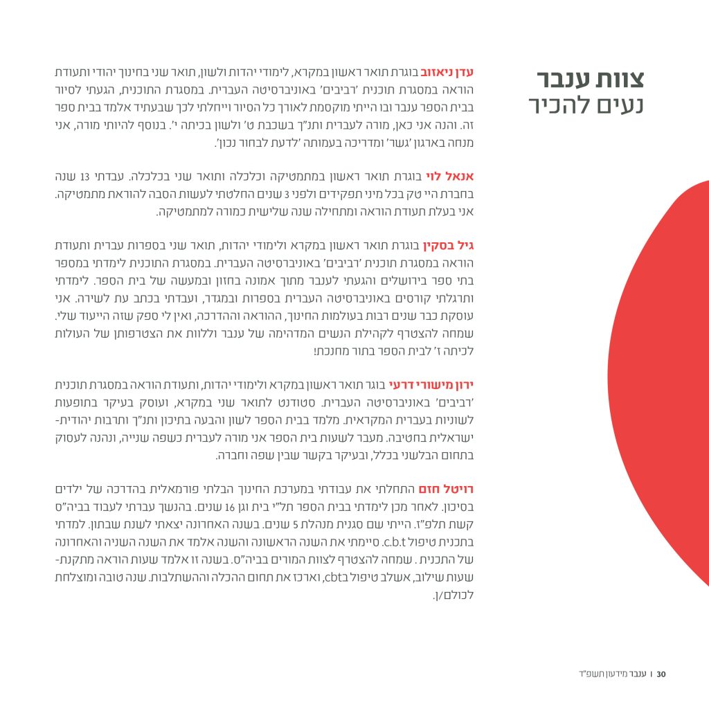 אני נרגשת להיות חלק מענבר – קהילה של א.נשים בעלי תשוקה לבנייה ועשייה מתוך חזון חברתי, תודעת שליחות ומקצועיות.
